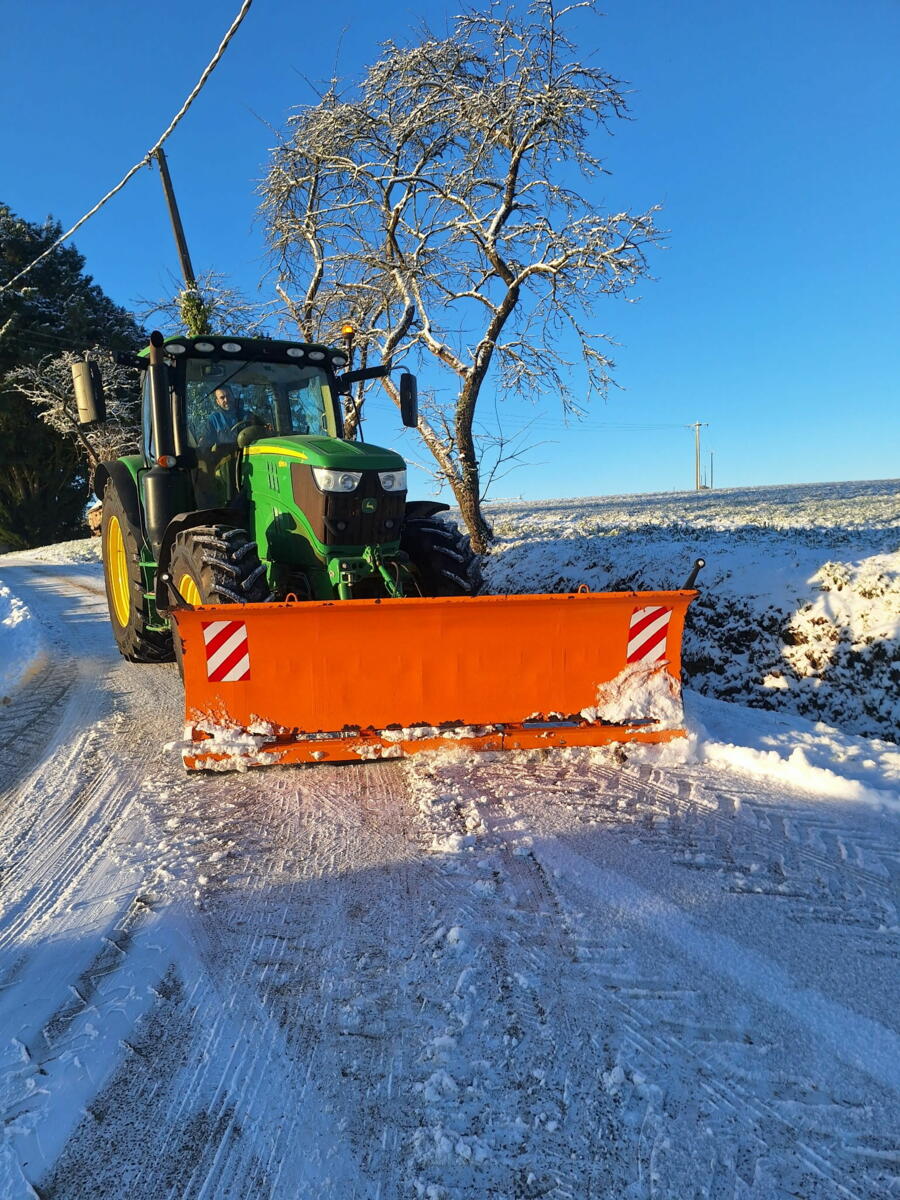 La neige est tombée hier sur notre commune. Le déneigement a été effectué dès hier soir par le GAEC du Pressoir, que nous remercions vivement pour sa réactivité et son efficacité.