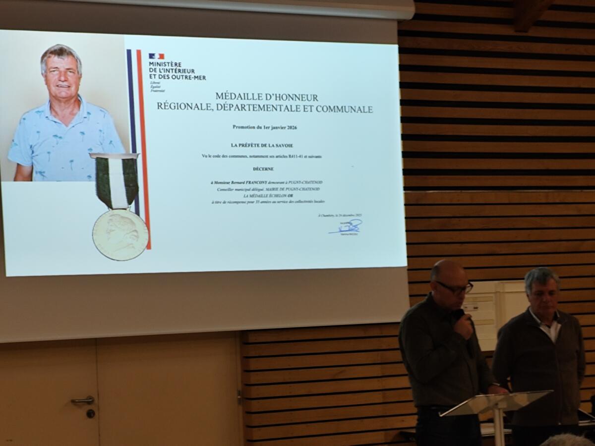 À l’occasion de ses 35 ans de service au sein de la Commune, Monsieur Bernard FRANCONY, Conseiller Municipal Délégué, a reçu une médaille d’or en reconnaissance de son engagement.