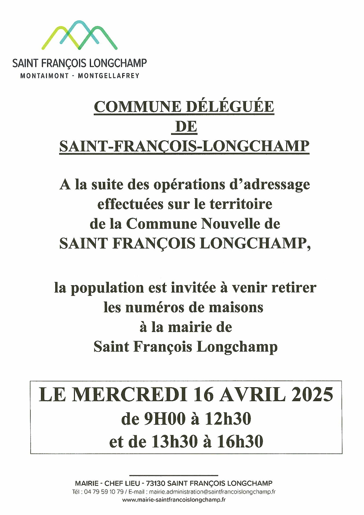Distribution Numéros de rues Saint-François-Longchamp 25-04-08 Source : Commune nouvelle de Saint François Longchamp