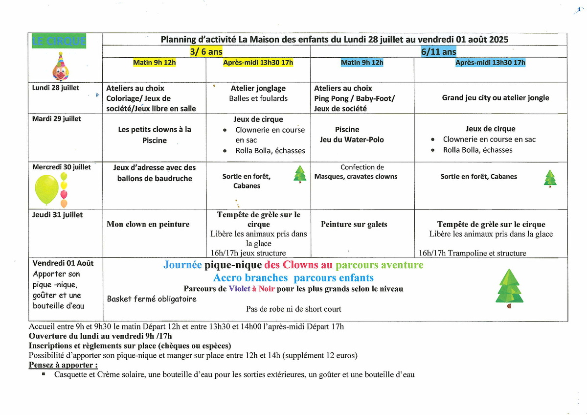 / Planning Maison des Enfants du 28/07 au 01/08