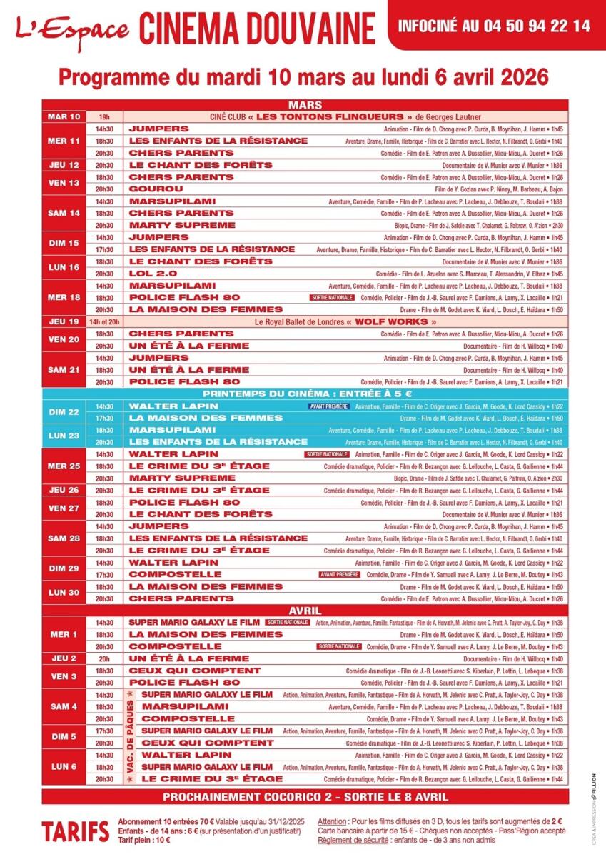 Votre nouveau programme de l'Espace Cinéma