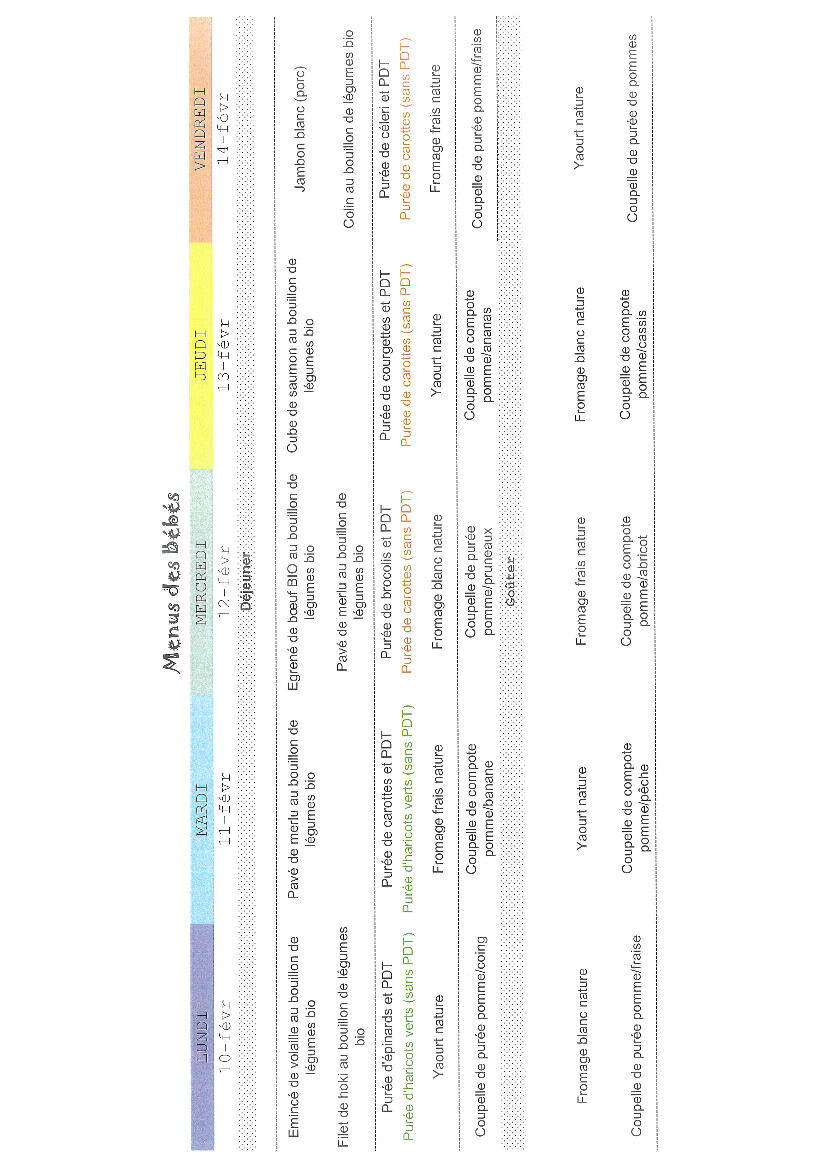 vos menus de la crèche pour les semaines 07 et 08
