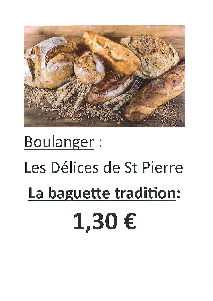 Nous vous informons que le jour de fermeture du boulanger est le lundi.