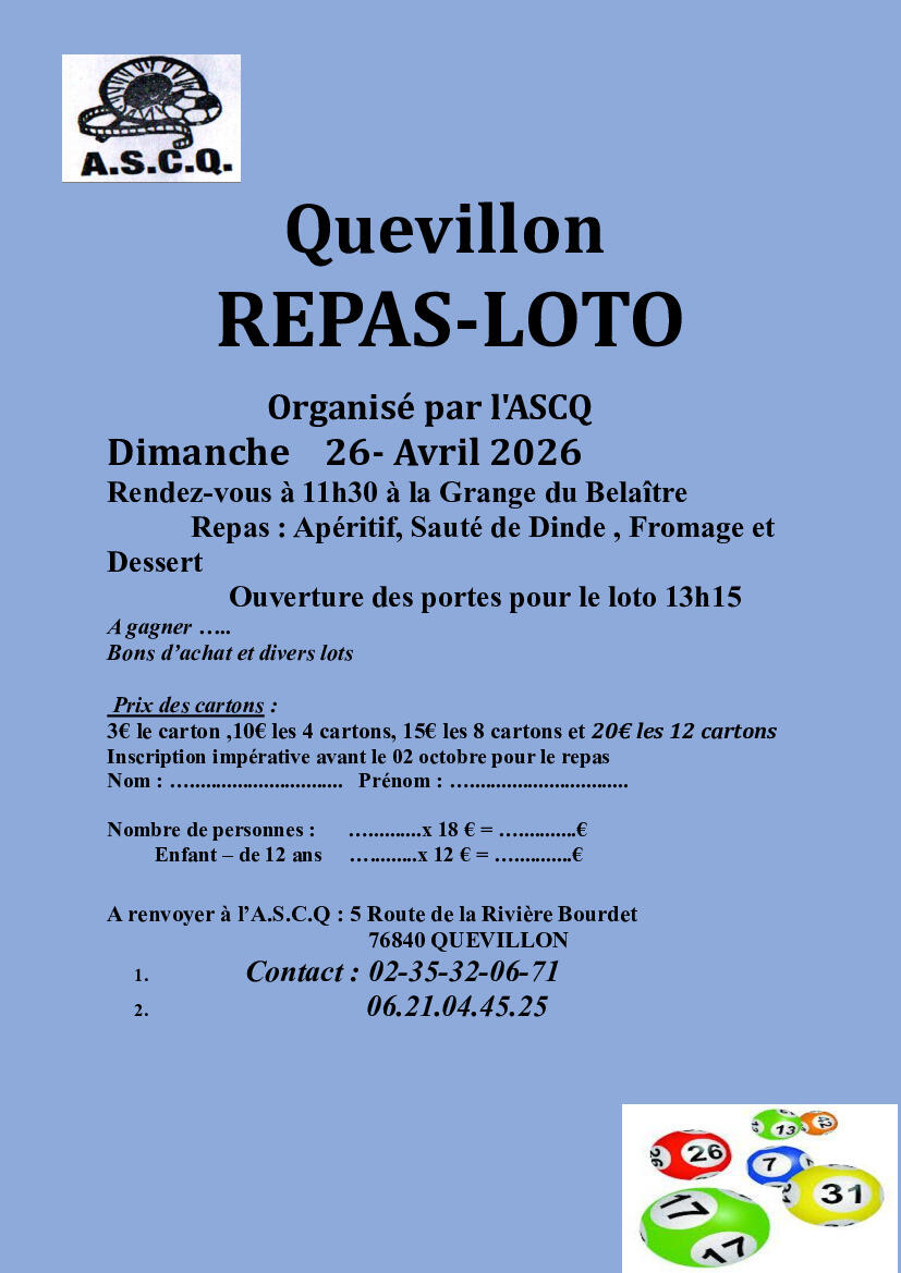 ASCQ - Repas -loto le 26 avril 2026