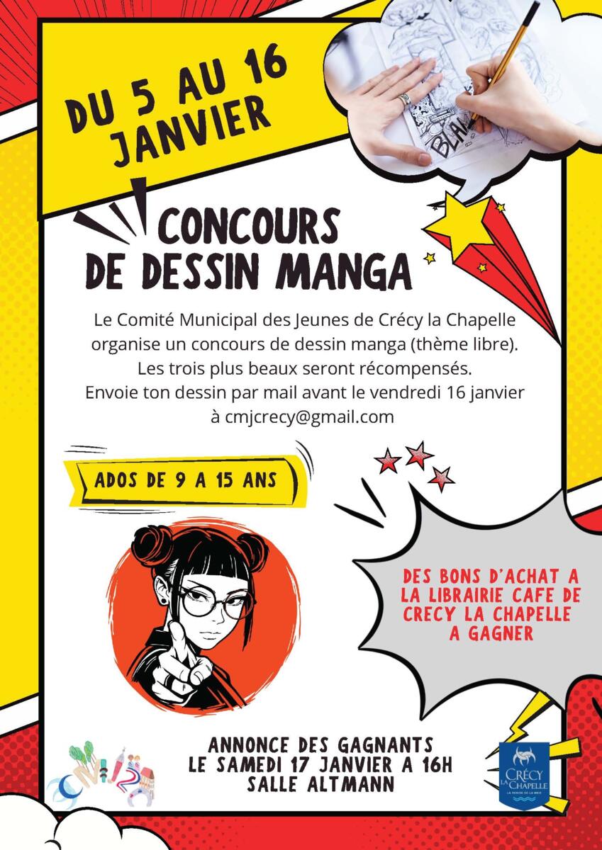 Le Comité Municipal des Jeunes de Crécy-la-Chapelle organise, du 5 au 16 janvier, un concours de dessin manga pour les ados de 9 à 15 ans.