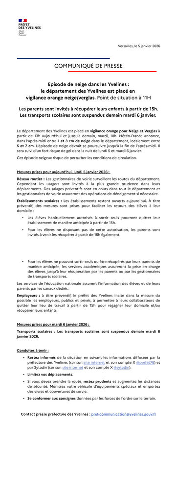 trouver ci-joint le communiqué de presse de la préfecture des Yvelines.