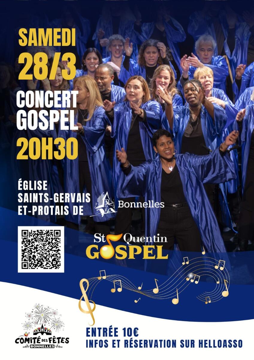L’église de Bonnelles résonnera de voix, d’énergie et de joie avec le groupe St Quentin Gospel, une formation d’une trentaine de chanteurs unis pour faire vibrer les cœurs.