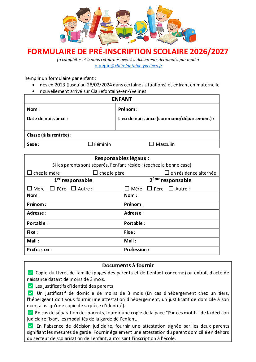 📝 Inscription scolaire rentrée septembre 2026