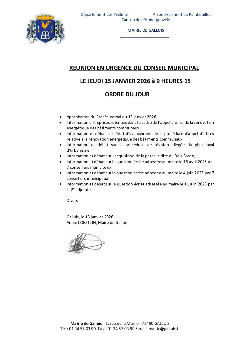 REUNION EN URGENCE DU CONSEIL MUNICIPAL