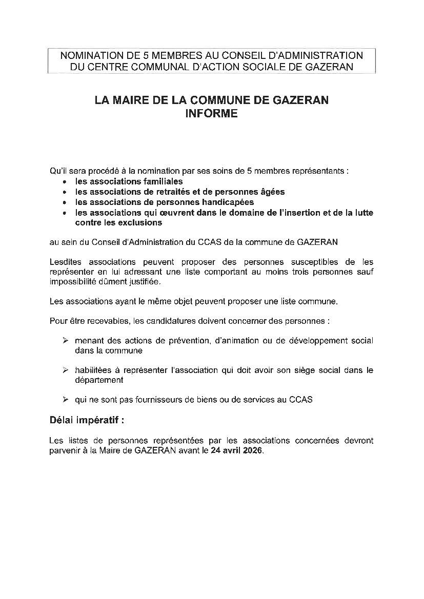 NOMINATION DE 5 MEMBRES AU CONSEIL D'ADMINISTRATION DU CCAS