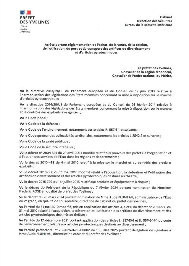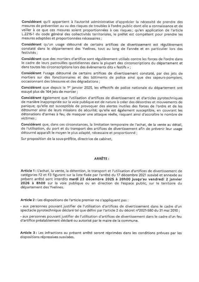Dans la perspective des fêtes de fin d'année, la préfecture des Yvelines nous a communiqué deux arrêtés relatifs au carburant et aux artifices.