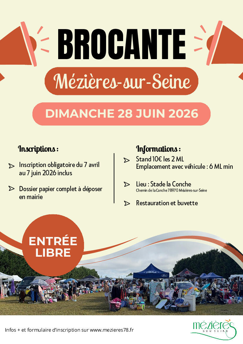 Votre mairie / Agenda / 📢 BROCANTE DE MÉZIÈRES-SUR-SEINE – ÉDITION 2026
