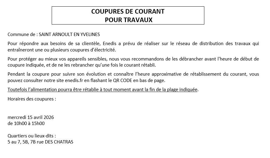 Coupure d'électricité programmée le 15 avril de 10h à 15h