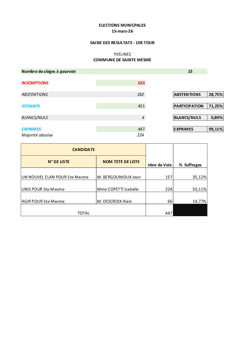 Résultats des élections