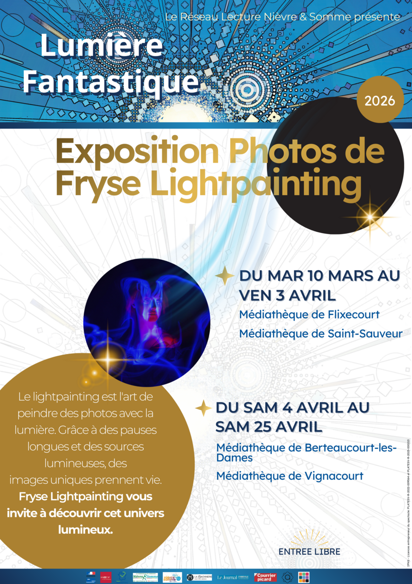 Ateliers de découverte de Lightpainting 26-03-03 Exposition Lightpainting du 10 mars au 3 avril et Ateliers enfants (8-12 ans) durée 1 h 30 Samedi 14 mars à 10 h 00