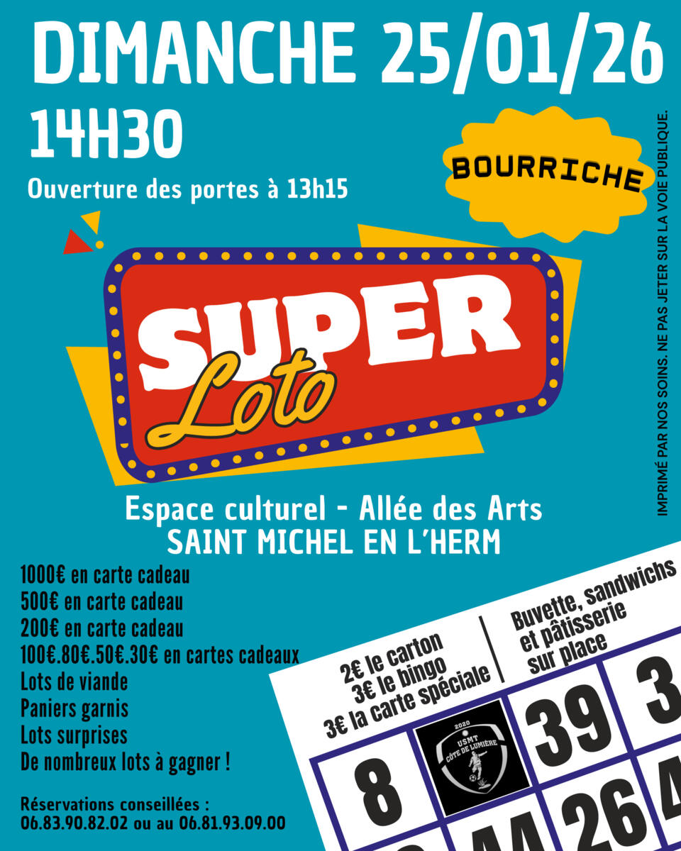 Organisé par l'USMT foot. Espace culturel à St Michel. Nombreux lots, bourriche. Réservation conseillée au 06 83 90 82 02 / 06 81 93 09 00