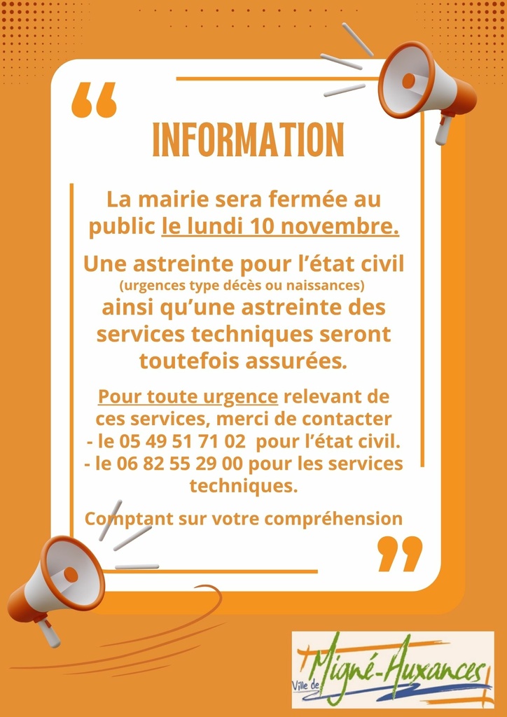 / FERMETURE DES SERVICES DE LA MAIRIE LE 10 NOVEMBRE