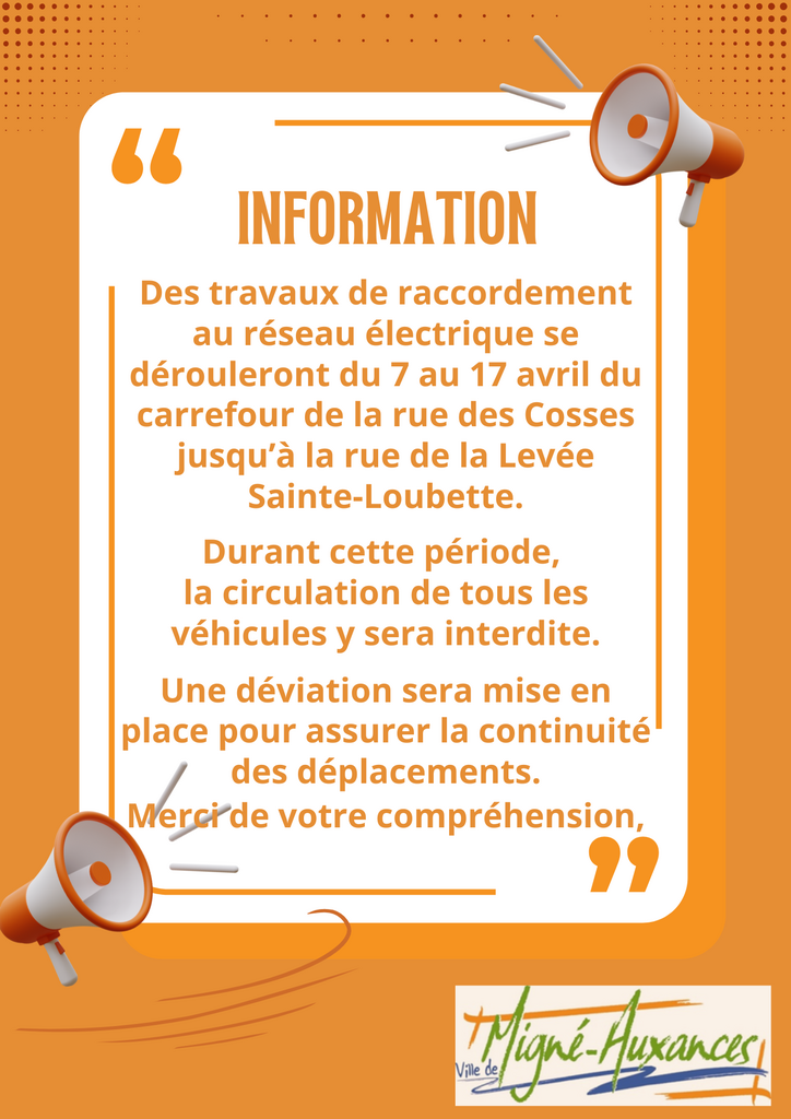 / INFO TRAVAUX - RUE DES COSSES