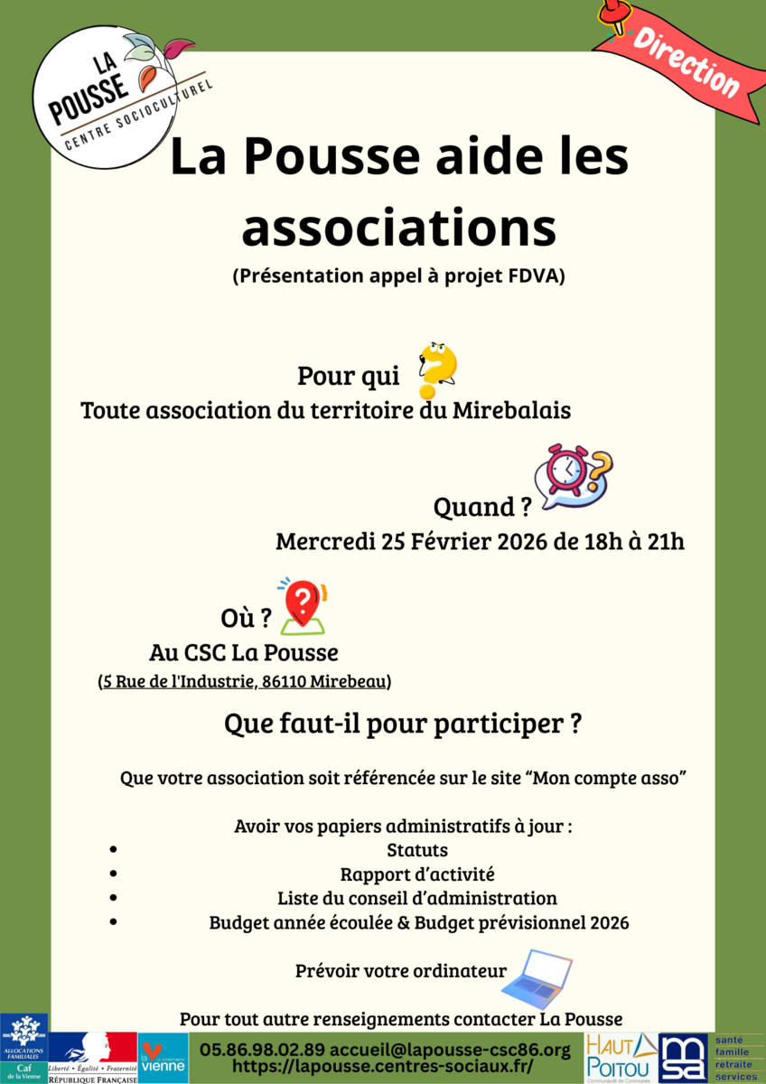 Votre mairie / Actualités / CSC La Pousse - Aide aux associations