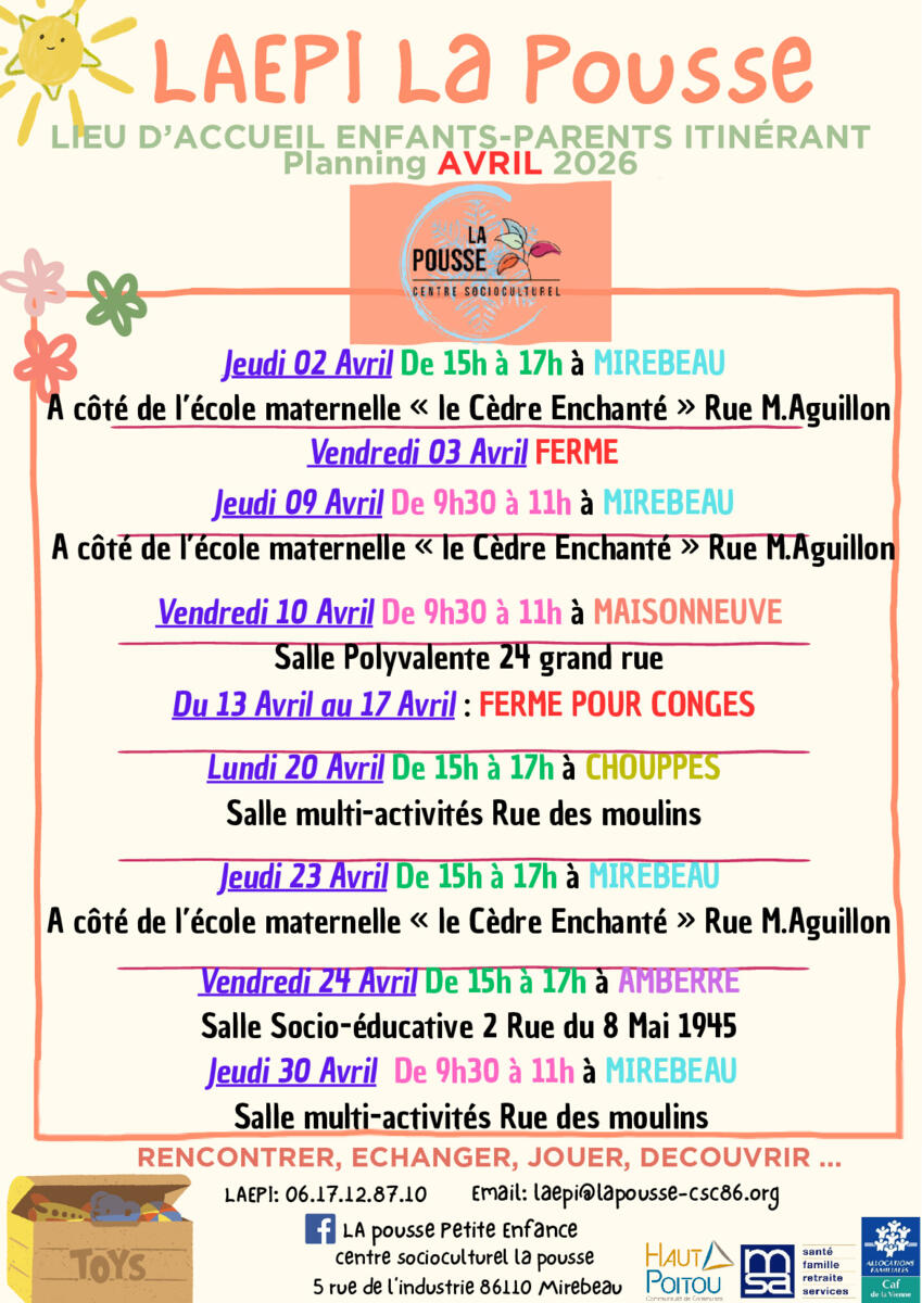 Votre mairie / Actualités / CSC La Pousse - Programme LAEPI Avril 2026