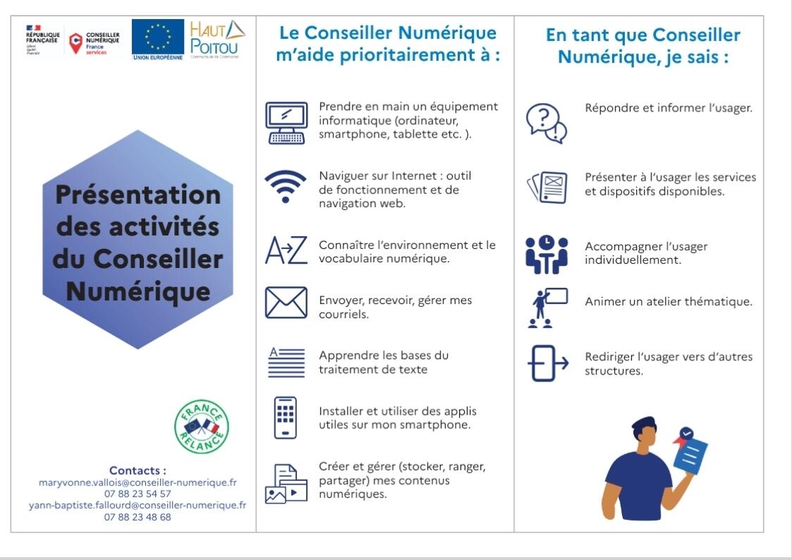 Chaque vendredi matin de 9h à 11h30 dans la salle des fêtes d'Yversay venez retrouver Yann Baptiste Fallourd conseiller numérique pour vous initier à l'utilisation des outils numériques.