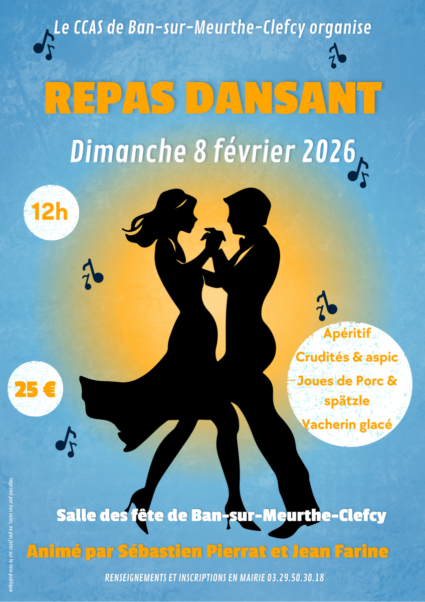 Repas dansant du 8 février. Il ne reste plus que 3 places...