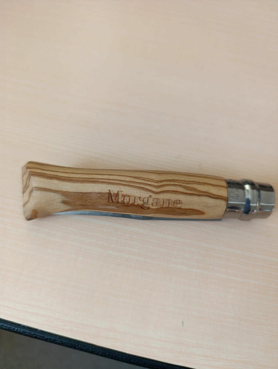 Un couteau Opinel personnalisé avec les prénoms Manon et Morgane a été rapporté en mairie.