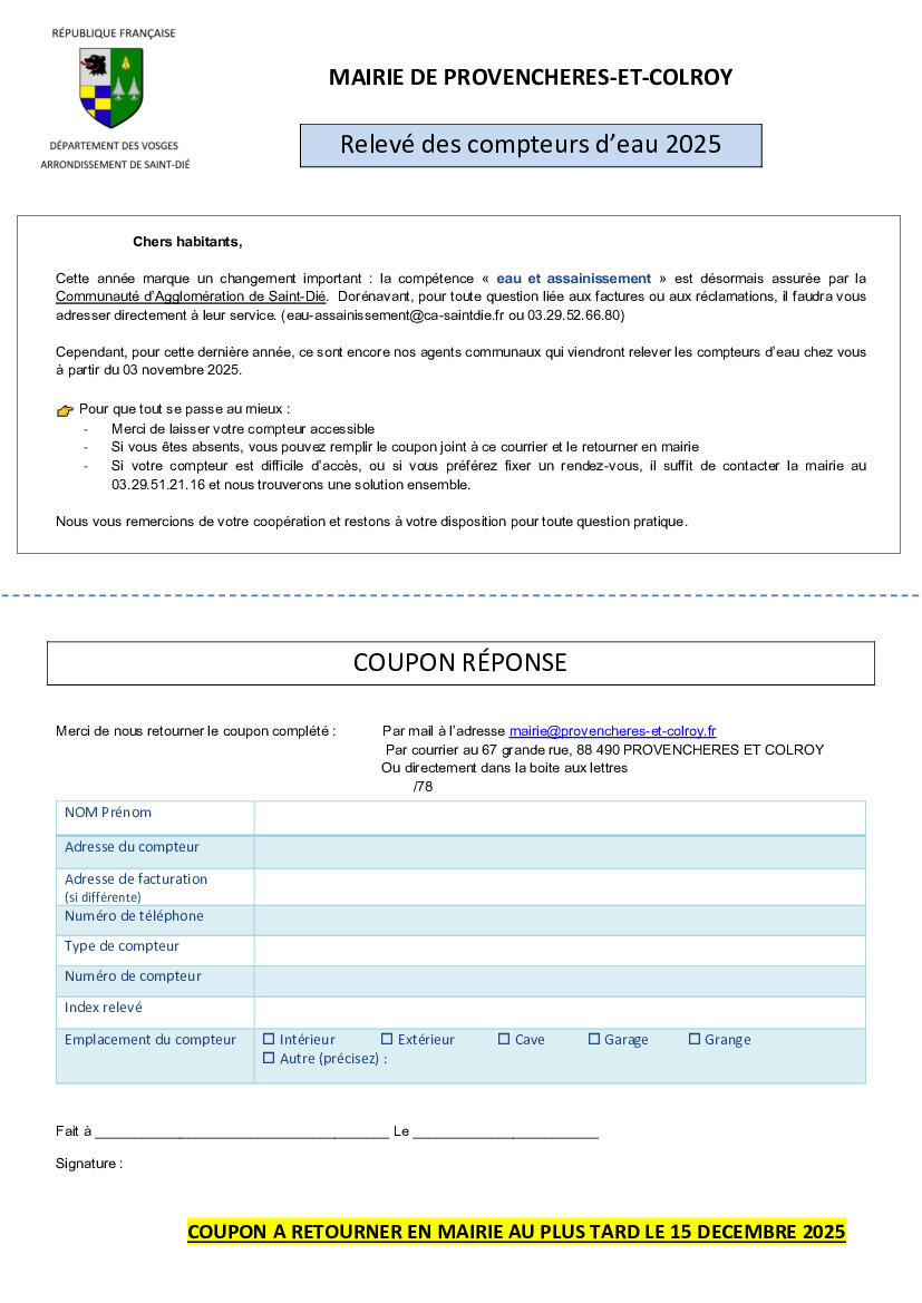 Toute l'actualité de PROVENCOL Mairie de Provenchères et Colroy