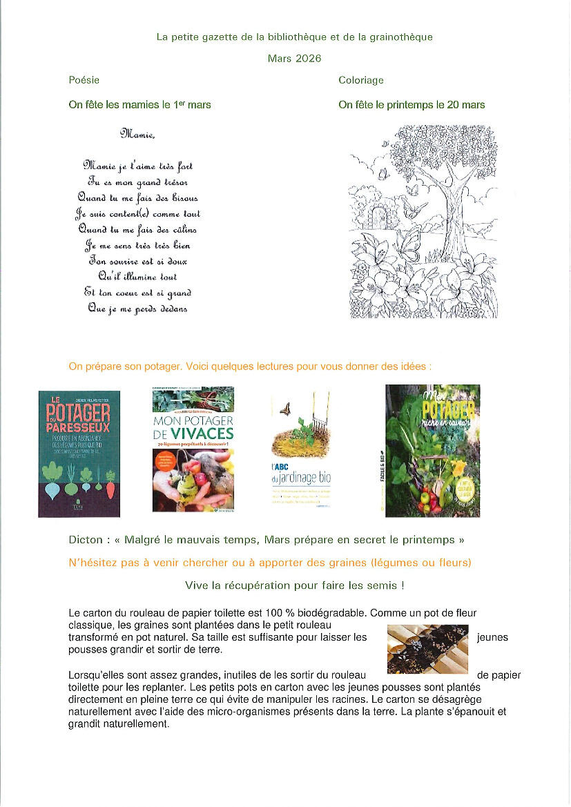 La petite gazette de la bibliothèque et de la grainothèque