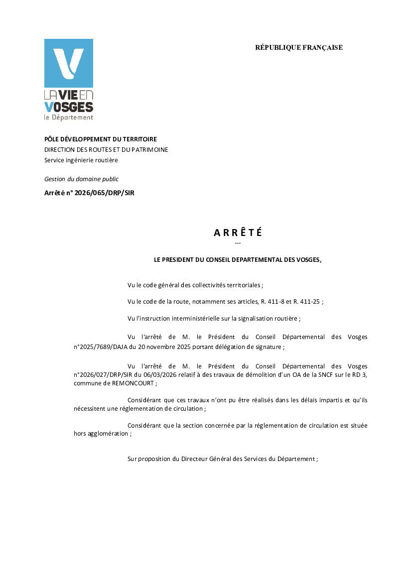 Réfection du pont de la gare : fermeture RD3 prolongation