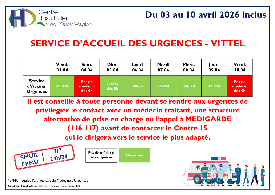 Planning d'ouverture des urgences de Vittel