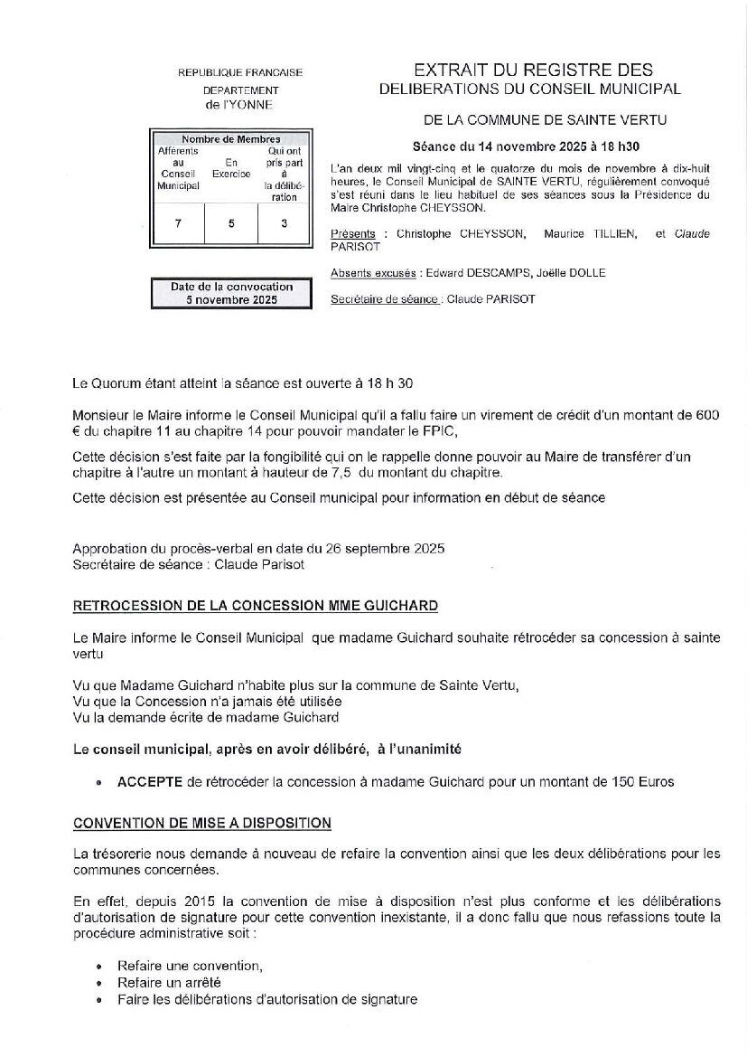 Votre mairie / Actualités / Compte rendu du conseil du 14/11/25