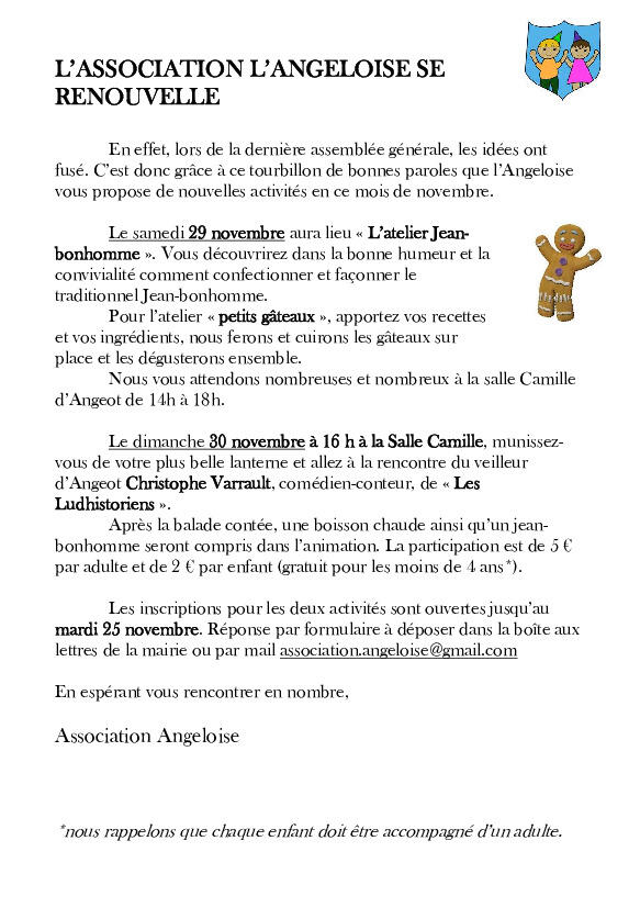 Reprise de la GYM à Angeot : lundi 3 novembre