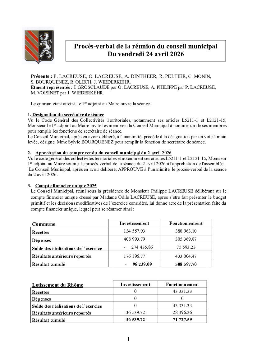 Séance du conseil municipal - 24 avril 2026 -