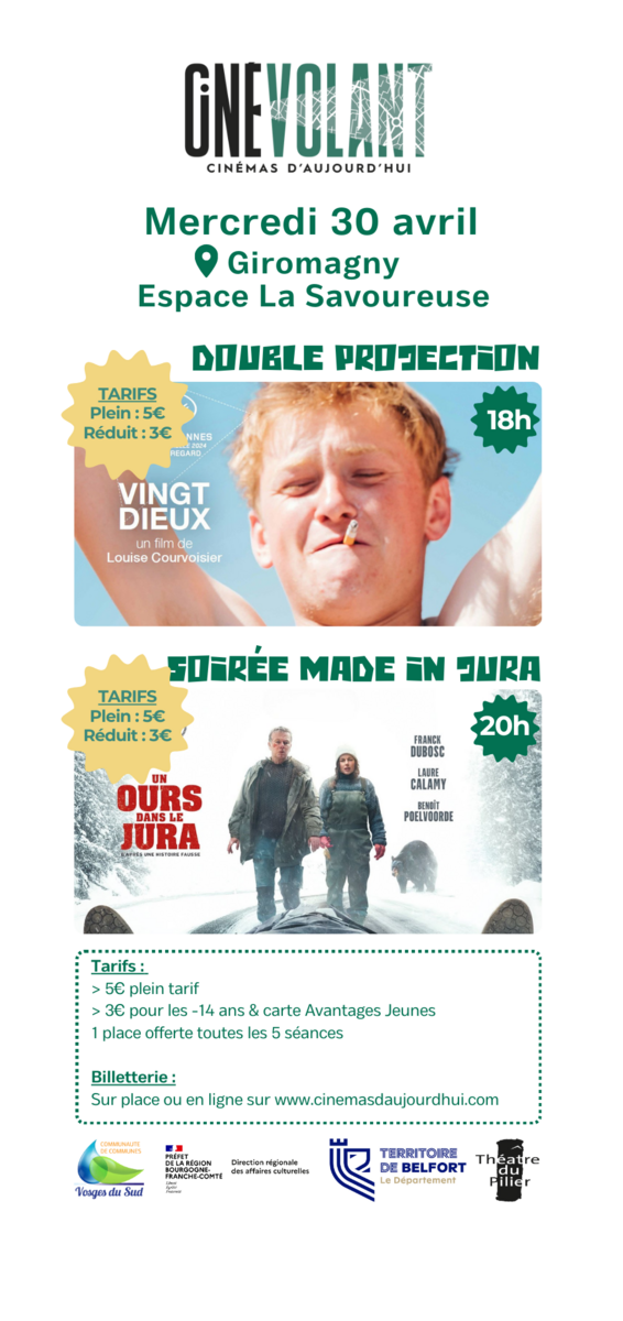 Ciné-volant - Ajout de séances Vingt-Dieux et Un Ours dans le Jura