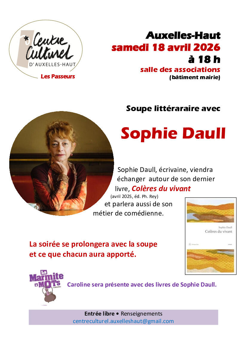 Votre mairie / Actualités / Soupe Littéraire 18 avril avec Sophie DAULL