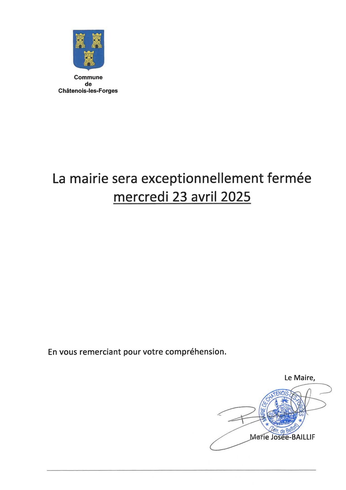 FERMETURE EXCEPTIONNELLE DE LA MAIRIE