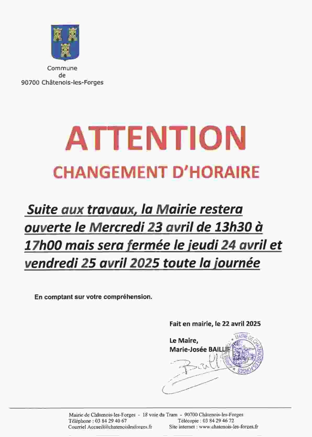 / FERMETURE EXCEPTIONNELLE DE LA MAIRIE