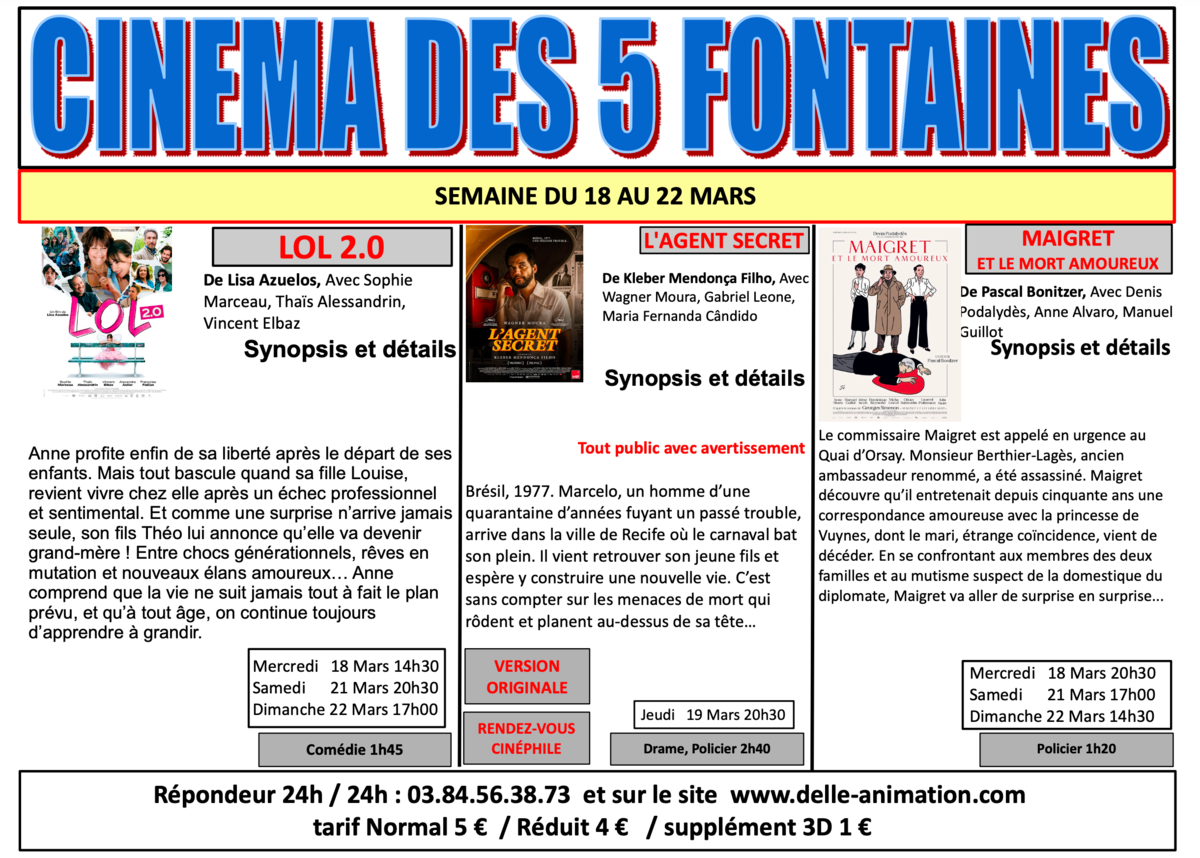 Cette semaine au cinéma des 5 Fontaines