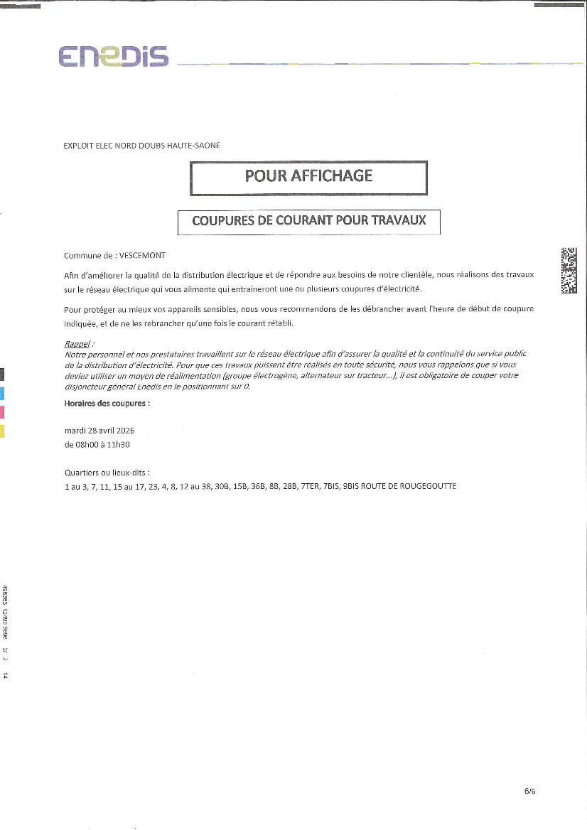 Votre mairie / Actualités / 🔴 INFO ENEDIS : coupure de courant pour travaux