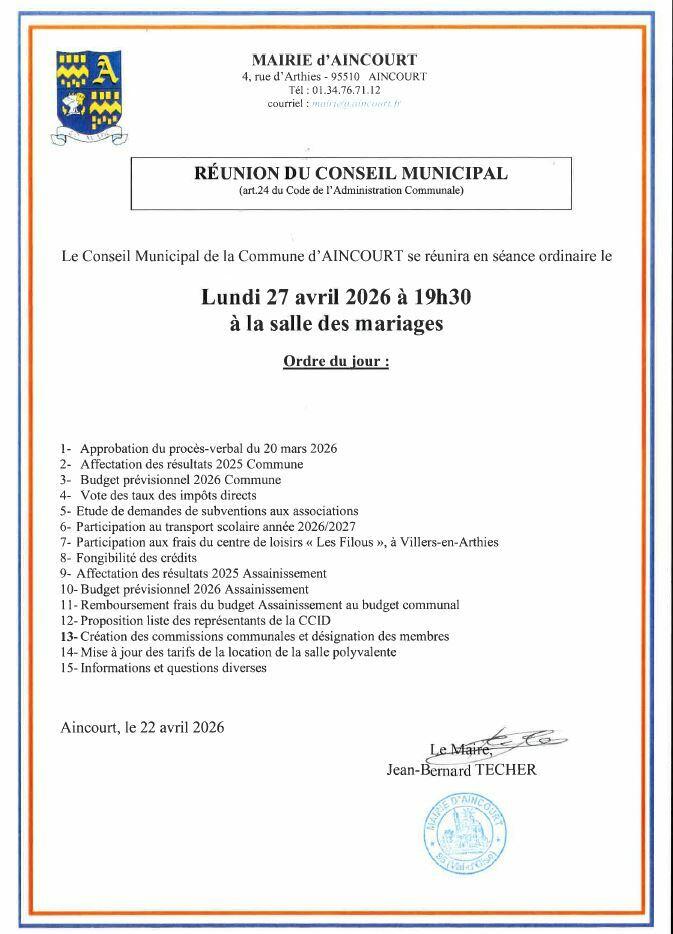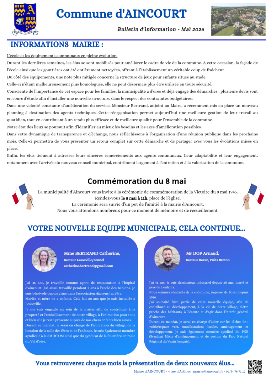 Toute l'actualité de Mairie d'Aincourt