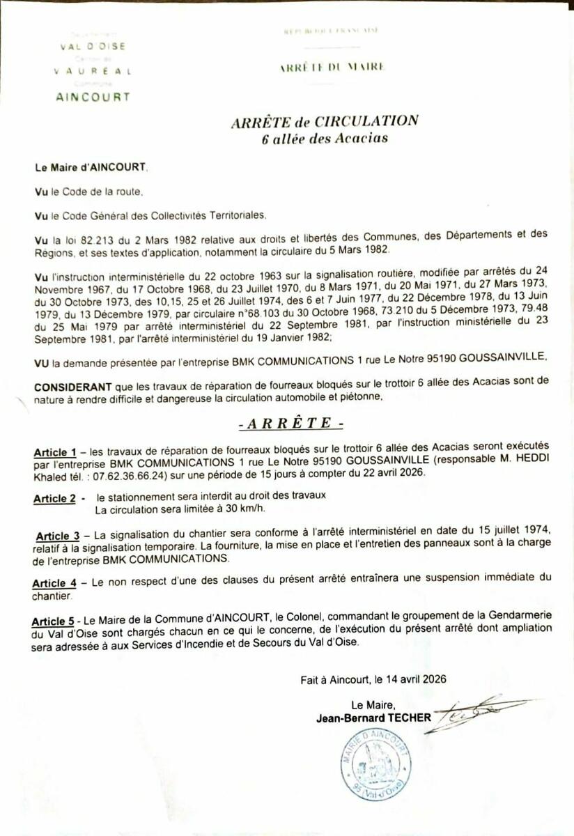 Arrêté de circulation Les Acacias