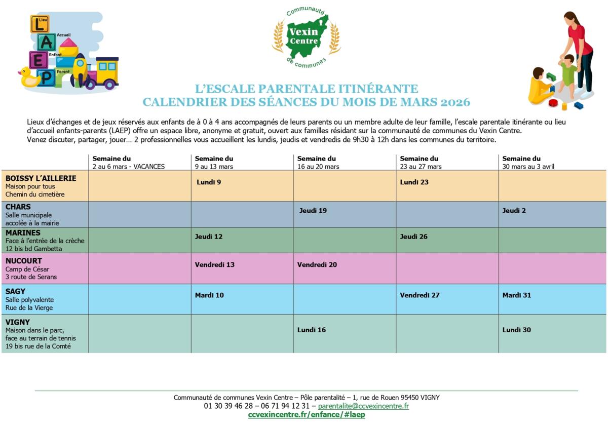 Votre mairie / Actualités / Planning LAEP du mois de mars 2026
