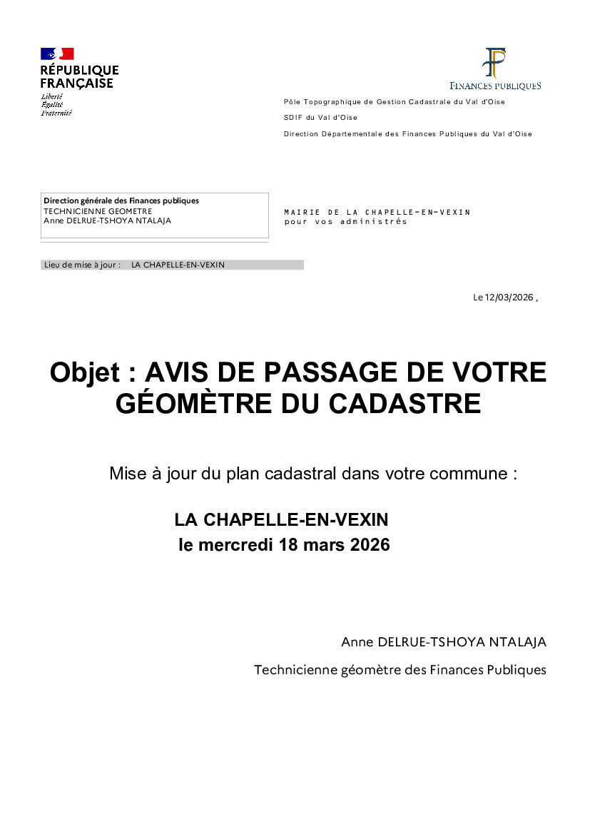 Toute l'actualité de Mairie de La Chapelle-en-Vexin