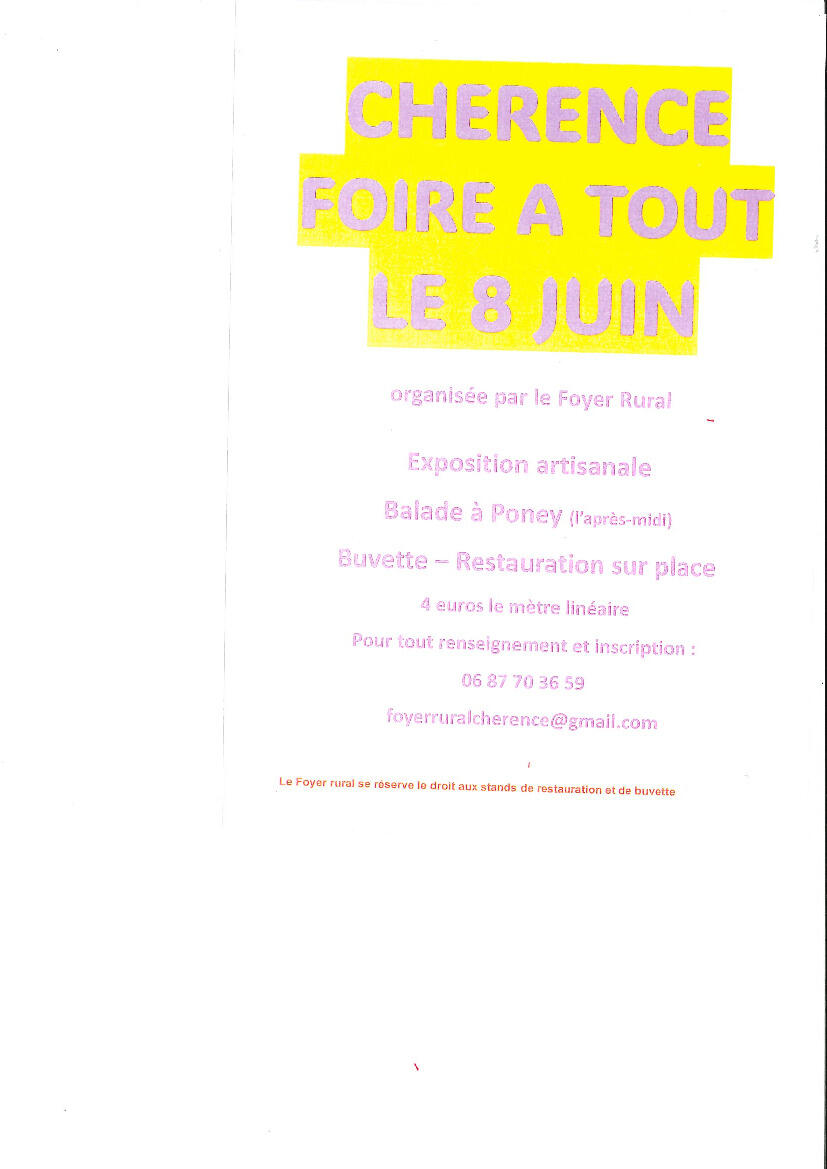 mairie info: Foire à tout 25-04-25 Le foyer rural organise une foire à tout le dimanche 8 juin 2025 Venez nombreux Bien cordialement