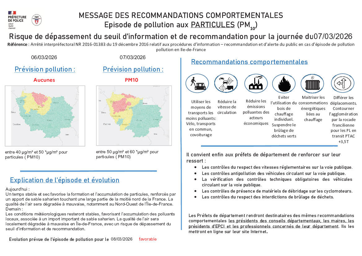 Vous trouverez ci-dessous les recommandations sanitaires à suivre : L'Agence régionale de santé (ARS) d'Île-de-France recommande :