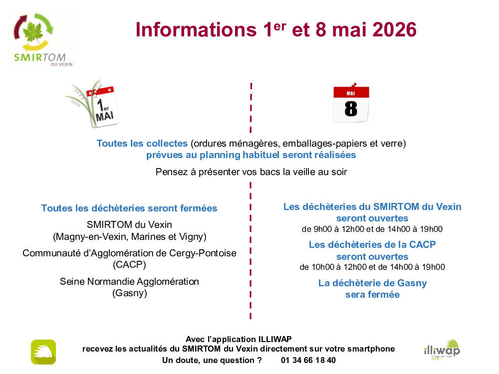 SMIRTOM : collecte et déchèteries 1er et 08 mai 2026
