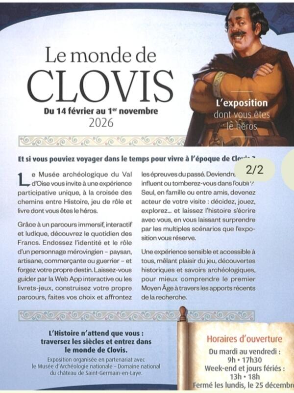 Musée archéologique du val d Oise 🛖🔎🏺 26-02-24 exposition CLOVIS 📢🏁🗡️ Source : Mairie de Guiry-en-Vexin