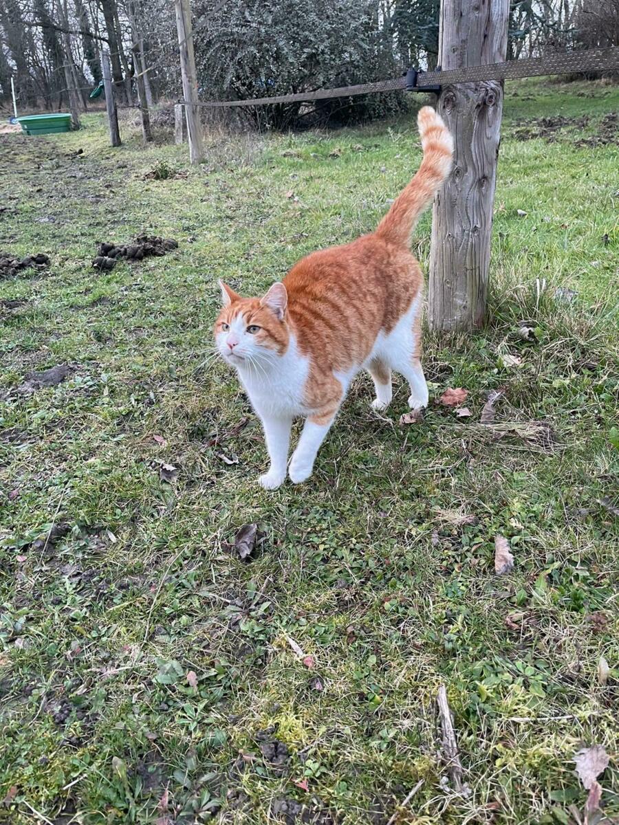 Un chat roux et blanc, visiblement très affectueux, semble perdu et cherche à rentrer dans la maison d'une administrée depuis quelques jours.