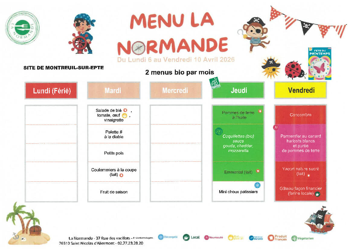 📌 Du mardi 7 avril au vendredi 10 avril 2026 par site de restauration scolaire 👇